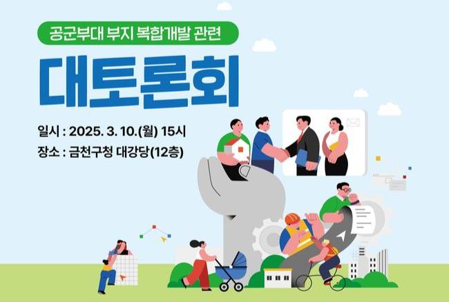 금천구(구청장 유성훈)는 공군부대 부지의 공간혁신구역 복합개발 계획 수립을 위해 `주민 대토론회`를 개최한다. 토론회는 지역 주민과 관계 전문가들이 참여해 오는 3월 10일(월) 오후 3시 금천구청 대강당에서 진행된다.