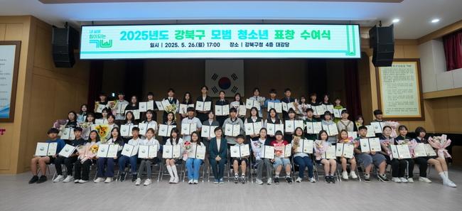 서울 강북구(구청장 이순희)는 지난 26일 구청 대강당에서 `2025년 강북구 모범 청소년 표창 수여식`을 개최했다고 밝혔다.