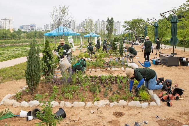 참가자들은 지난 4월부터 가드닝의 기초이론부터 식물 선정, 식재 방법 등 이론과 실습을 아우르는 전문 교육을 받은 뒤, 팀당 약 9㎡ 규모의 구획을 분양받아 각양각색의 미니정원 20개를 안양천 힐링가든 일대에 조성했다. 이들은 11월까지 정기 프로그램에 참여하면서 자유롭게 정원을 조성하고 관리해나갈 예정이다.