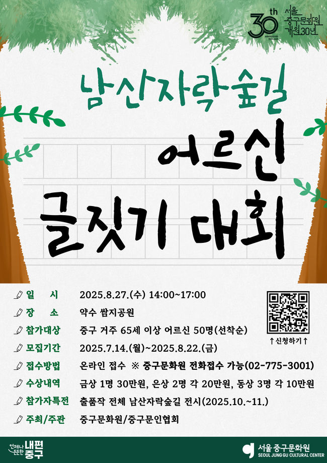 서울 중구, 남산자락숲길 어르신 글짓기 대회 개최