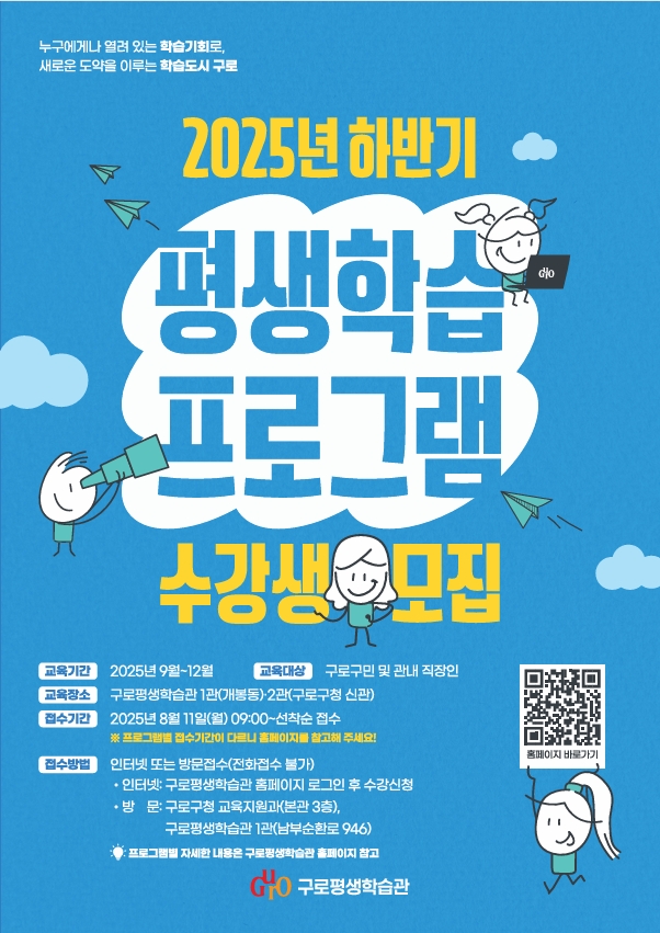 서울 구로구가 하반기 평생학습 프로그램 참여자를 모집하며 구민 누구나 배움의 기회를 누릴 수 있는 학습도시 조성에 나선다.