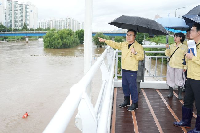 중랑구가 집중호우로 인한 중랑천 침수 구간에 대해 긴급 현장 점검을 실시해 인명피해 예방과 신속한 대응에 나섰다.