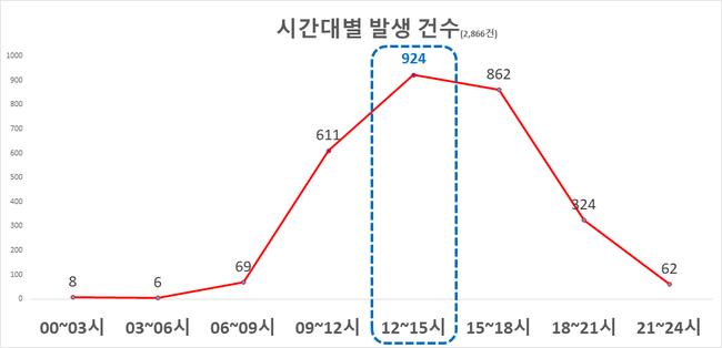 • 남성이 여성보다 2.5배 많아…정오~오후 6시 62% 집중