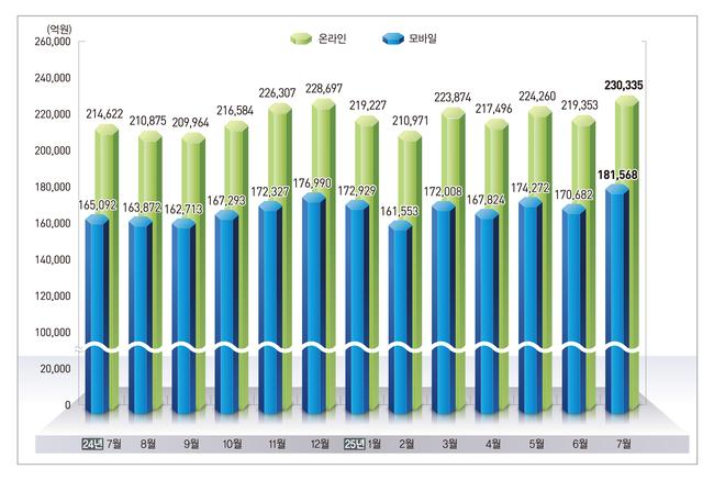2025년 7월 온라인쇼핑 거래액 23조 원 돌파…모바일 비중 78.8%