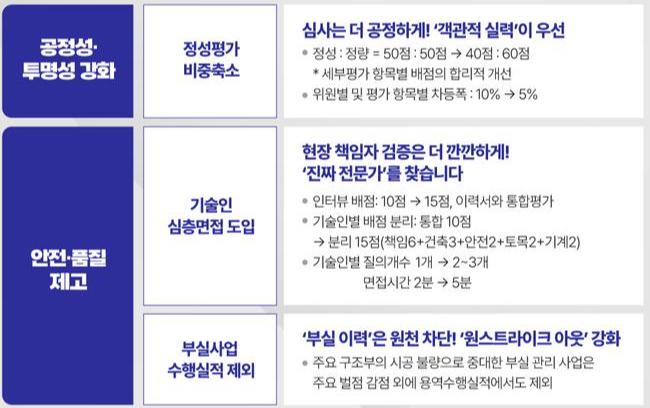 • 기술인 심층면접·부실 실적 배제 등 안전·품질 강화