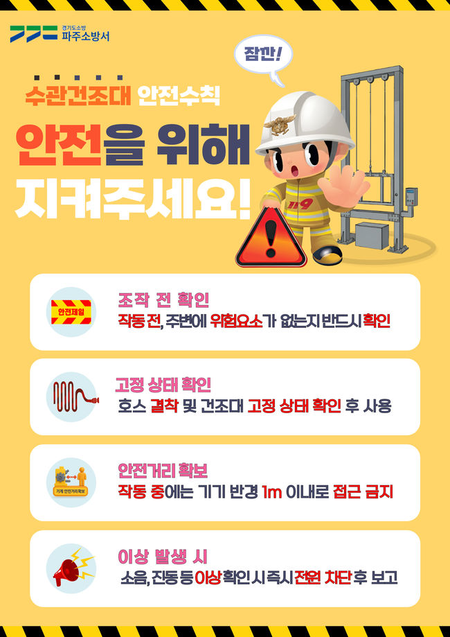 파주소방서, 전국 최초 ‘소방호스 건조대 안전수칙’ 제작·배포