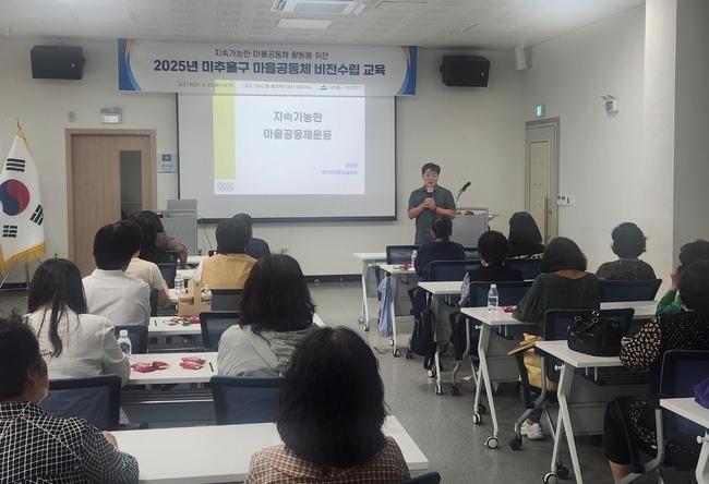 인천 미추홀구(구청장 이영훈)는 지난 23일 마을공동체와 지역 주민을 대상으로 `2025년 지속 가능한 마을공동체 비전 수립 교육`을 개최했다.