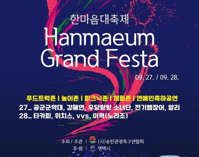 사단법인 송탄관광특구연합회가 주최·주관하는 `제14회 송탄관광특구 한마음대축제`가 오는 27일(토)과 28일(일) 양일간 송탄출장소 앞 송탄관광특구 일대에서 성대하게 열린다.
