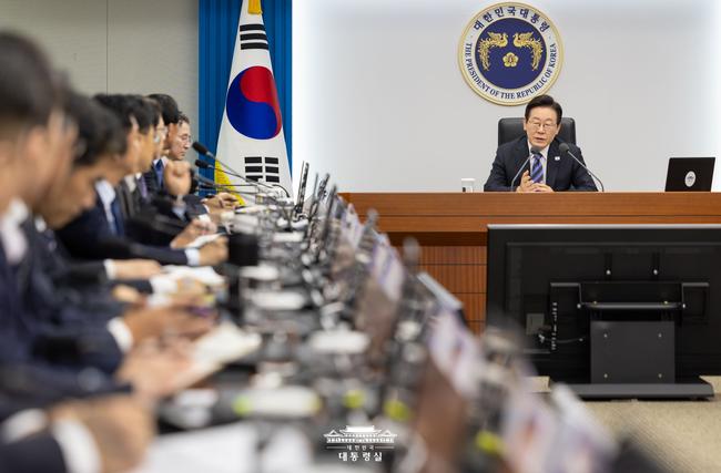 이재명 대통령이 지난 13일 용산 대통령실에서 열린 수석보좌관회의에서 발언하고 있다.