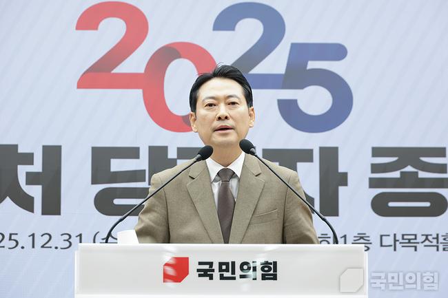 장 대표는 “오늘로 2025년은 막을 내리지만 오늘부터 통일교 특검과 관련 인사들에 대한 철저한 수사가 시작돼야 한다”며 “이런 민주당의 행태를 보며 내년 지방선거에 반드시 승리해야겠다는 다짐을 다시 하게 된다”고 말했다. 그는 “내년 지방선거는 단순한 정기 선거가 아니라 대한민국 역사상 가장 중요한 선거가 될지도 모른다”고 했다.