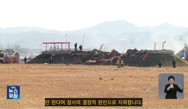 국토교통부는 무안공항 로컬라이저의 설치와 관련해 일부 우려에 대해 "해당 장비는 국제민간항공기구(ICAO)의 규정을 준수하며 설치되었고, 관련 국내 규정에도 부합한다"고 밝혔다. 사진=방송화면