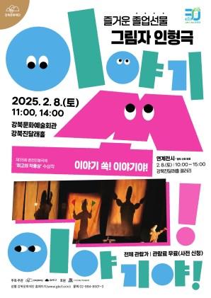먼저, 2월 8일 강북문화예술회관 강북진달래홀에서는 강북구 예비 초등생을 위한 `즐거운 졸업선물` 사업의 일환으로, 그림자 인형극 `이야기 쏙! 이야기야!`가 무대에 오른다. 생동감 넘치는 인형극과 함께 전통 음악이 어우러져 어린이뿐만 아니라 가족 단위 관객들에게도 큰 즐거움을 선사할 것으로 기대된다.