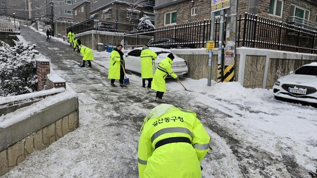특히 기상청 예보에 따라 기습강설이 내리기 전, 관내 전 도로구간에 대한 사전 살포를 시행했으며, 주요 간선도로와 결빙 취약구간을 최우선으로 제설작업을 진행했다.
