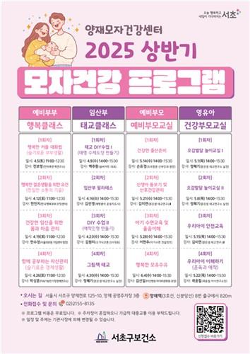 서울 서초구(구청장 전성수)가 이달 5일부터 양재모자건강센터에서 건강한 임신·출산·육아를 위한 `모자건강 프로그램`을 운영한다고 11일 밝혔다.