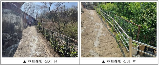 이번에 설치된 안전 손잡이는 총 7개 구간, 연장 약 62미터에 달하며, 보행자 안전 확보를 위한 배수로 횡단보도도 2곳에 함께 조성됐다. 공사 중에는 추가 민원이 접수돼 일부 구간 설치가 확대되기도 했다.