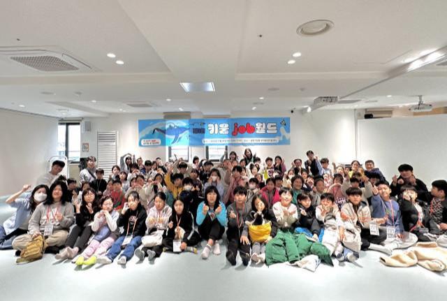 `제1회 키움 job월드`에 참여한 아동들이 단체사진을 촬영하고 있다