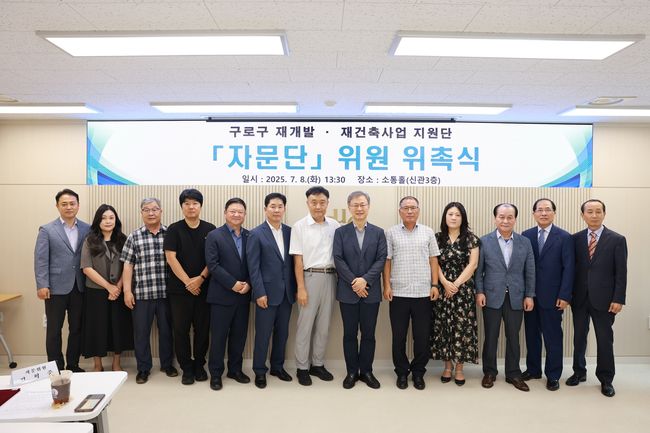 구로구(구청장 장인홍)가 7월 8일 구청 신관 3층 소통홀에서 ‘구로구 재개발·재건축사업 자문단’ 위촉식을 개최하고 정비사업 분야별 전문가 15명을 위촉하며 자문단의 공식 출범을 알렸다. 이는 지난 6월 10일 재개발·재건축사업 지원단 위원 3명 위촉에 이은 후속 조치다.