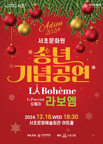세계적인 오페라 거장 푸치니의 서거 100주년을 기념해 진행되는 이번 공연에서는 크리스마스의 낭만을 담은 예술가들의 아름답고 슬픈 러브스토리 `오페라 라보엠`이 진행될 예정이다.