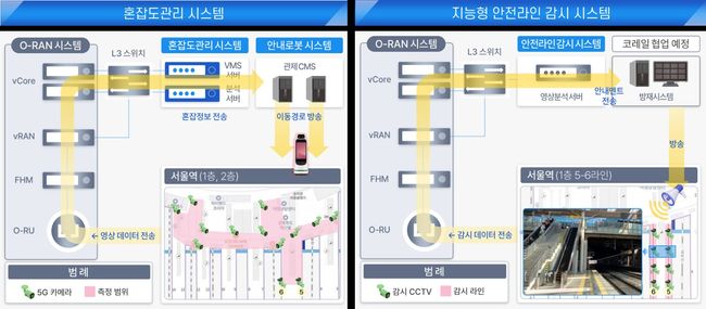 서울역에서는 일일 10만 명 이상이 이용하는 교통 거점을 대상으로, 다수의 무선 카메라를 오픈랜 특화망에 연결해 대용량 CCTV 영상을 실시간 전송한다. 수집된 데이터는 서버에서 혼잡도를 분석해 인파 쏠림을 예방하는 데 활용된다. 특히 LG전자의 소프트웨어 기반 기지국(O-DU)과 3개 제조사의 무선장치(O-RU)를 결합해 구현되는 다수 공급업체(멀티벤더) 환경은 국내는 물론 세계 최초 사례로, 오픈랜의 개방성과 유연성을 실질적으로 입증할 전망이다.