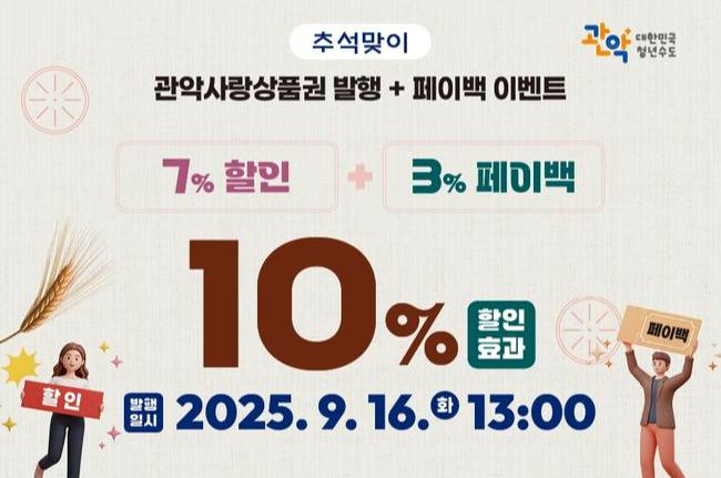 할인율 최대 10%까지...관악구, 추석맞이 관악사랑상품권 140억 원 발행