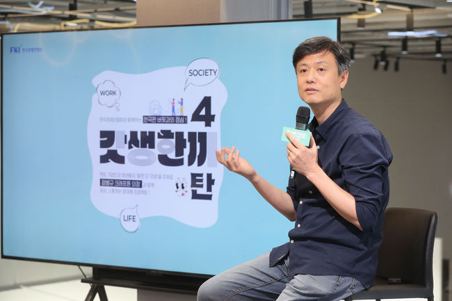 장병규 크래프톤 이사회 의장이 18일 서울 성동구 PUBG성수에서 청년 20명과 함께 한국경제인협회(한경협)의 청년 소통 프로그램 ‘갓생한끼’ 네 번째 자리에 나서 도전과 혁신의 메시지를 전했다.