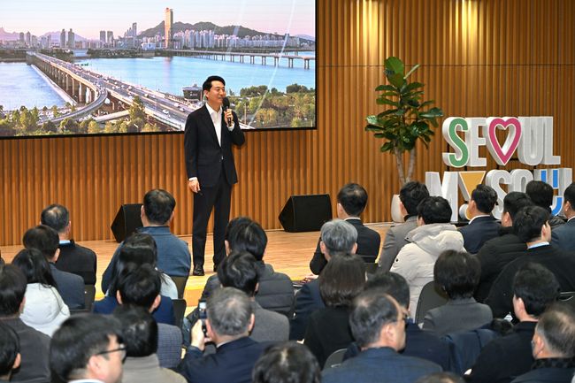 이날 시장은 ‘서울야외도서관’, ‘지하철 15분 재탑승 무료’, ‘도로 차선 시인성 개선’, ‘온기창고’, ‘동행식당’, ‘서울마음편의점’, ‘일상안심 3종 세트’, ‘잔여시간 표시 신호등’, ‘숏폼 제안’, ‘한강교각 미디어월’, ‘서울윈터페스타’ 등 시민 생활과 밀접한 다양한 정책 사례도 직접 언급했다.