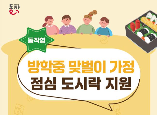 동작구는 겨울방학 동안 맞벌이 가정 등 초등학생 자녀의 돌봄 공백을 최소화하고 양육 부담을 덜기 위해 도시락 비용의 90%를 지원하는 `건강 도시락` 사업을 진행한다고 밝혔다.